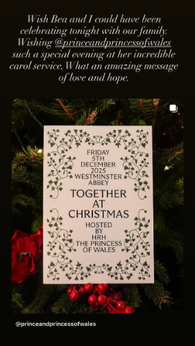 Sociálne siete zaplavili dojímavé zábery a dojatie a vďaku neskrývali ani samotní členovia kráľovskej rodiny. Kráľovská rodina sa na Instagrame poďakovala všetkým, ktorí pomohli vytvoriť „srdečnú a nezabudnuteľnú oslavu lásky“. No cez všetok lesk sviatočného večera sa mnohí pýtali na dôvody, prečo nebola rodina kompletná. Princezná Eugenie pritom sama priznala sklamanie na Instagrame. „Škoda, že Bea a ja sme nemohli oslavovať dnes večer s našou rodinou. Prajem princovi a princeznej z Walesu výnimočný večer na ich neuveriteľnej vianočnej bohoslužbe,“ napísala pomerne odmerane na sociálnu sieť.