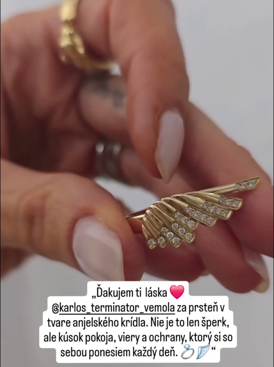 Mnohé jej sledovateľky jej vyjadrili podporu, no najviac ju nepochybne potešil manžel nádherným darom. Kúpil jej zlatý prsteň značky Garrard v tvare anjelského krídla, ktorého špičky sa trblietajú od drobných diamantov. Jeho cena je približne 4500 eur, a to je už poriadne bolestné. Ktovie, či mu Lela naznačila, že po takom niečom túži, alebo mu poradili v obchode, či dokonca tvar prsteňa vybral sám, no utrápenej manželke ulahodil. "Nie je to len šperk, ale kúsok pokoja, viery a ochrany, ktorú si so sebou ponesiem každý deň. Presne ma vystihuje – kto ma pozná, ten vie, že anjelov nosím v srdci," priam poeticky napísala na Instagram. Ostáva veriť, že ďalšie "bolestné" už nebude nutné a ich synčekovi sa po zákroku polepší.