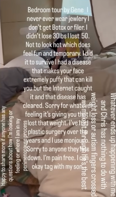 V príspevku zároveň priznala, že jej vzťah s manželom Chrisom je na dne. "Nech sa stane čokoľvek, nemá to nič spoločné s mojím úbytkom váhy, ani s jeho diagnózou autizmu," dušovala sa. Onedlho, 12. decembra, v jej vyhlásení na Instagrame už stálo čierne na bielom: "Po ťažkom rozhodovaní sme sa s Chrisom dohodli ukončiť naše manželstvo. Veľmi sa milujeme a budeme sa naďalej sústrediť na výchovu nášho syna." Na znak dobrého vzťahu zdieľala ich fotky z metra. Chris je známy ako šéfkuchár a Amy prehovorila otvorene o jeho poruche autistického spektra, čo vraj ale nebolo v ich vzťahu prekážkou.