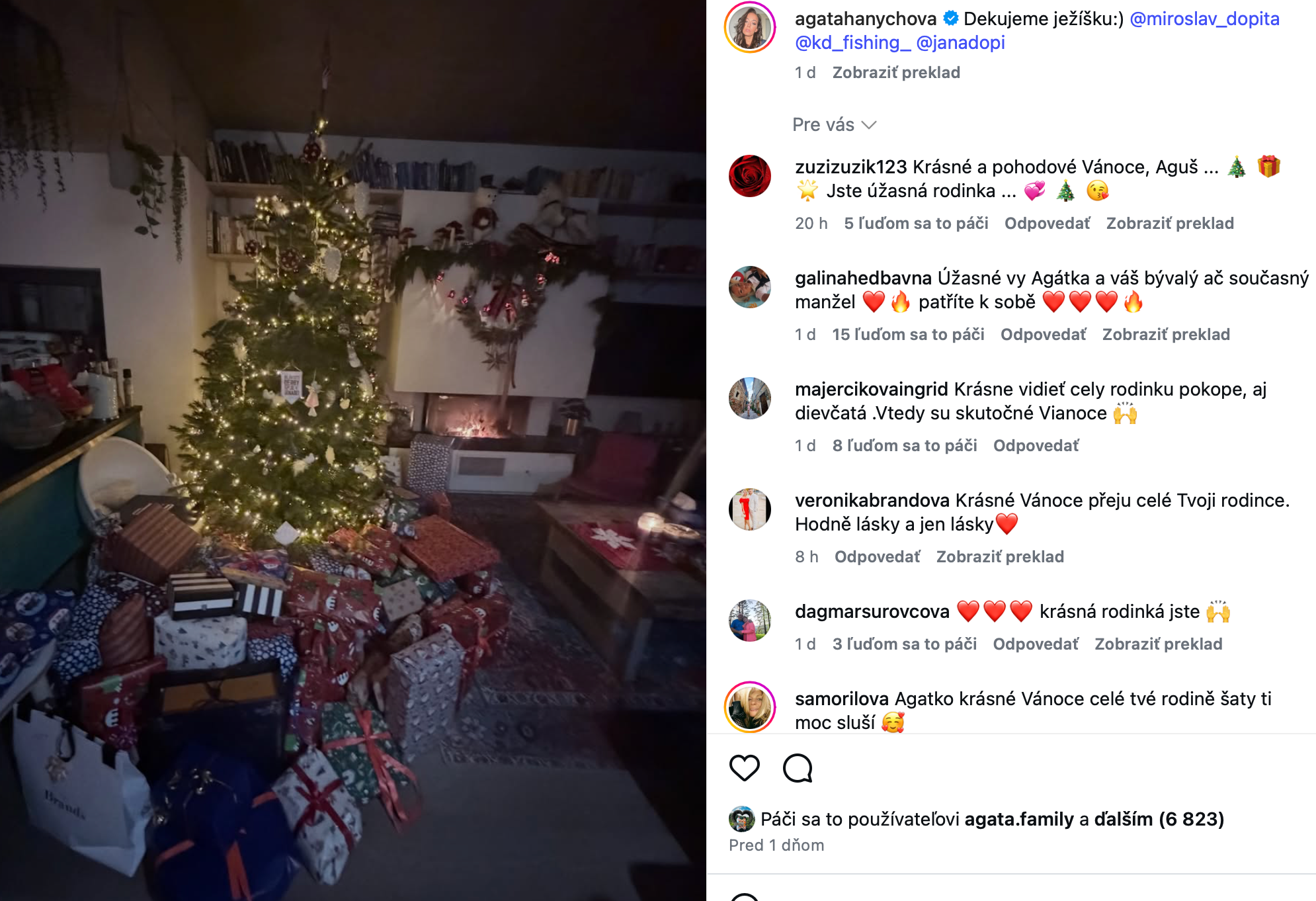 Prehovorila o tom v jej podcaste s Ornellou, keď sa rozprávali, ako to bude u nich pri štedrovečernom stole. "Nikto z rodiny so mnou nehovorí. Bude nás len päť," povedala na rovinu Agáta, ktorá tým naznačila, že budú večerať v úzkom kruhu rodiny s jej manželom, ich synom a jej dvomi dcérami. Ako sa ukázalo, zhruba tak to napokon aj bolo, akurát sa pripojila aj Dopitova sestra. A zdá sa, že aj dcérkam sa polepšilo a Štedrý večer si skutočne užili. Nečudo - každá dostala poriadnu kopu darčekov, Rozárka 20 a Mia 27. Agáta to opäť raz prepálila, ale to už asi nikoho neprekvapí.