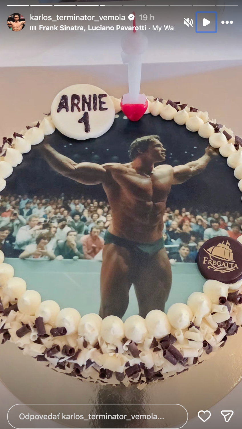 Kto iný by mohol zdobiť Arnieho narodeninovú tortu než jeho slávny menovec Arnold Schwarzenegger: