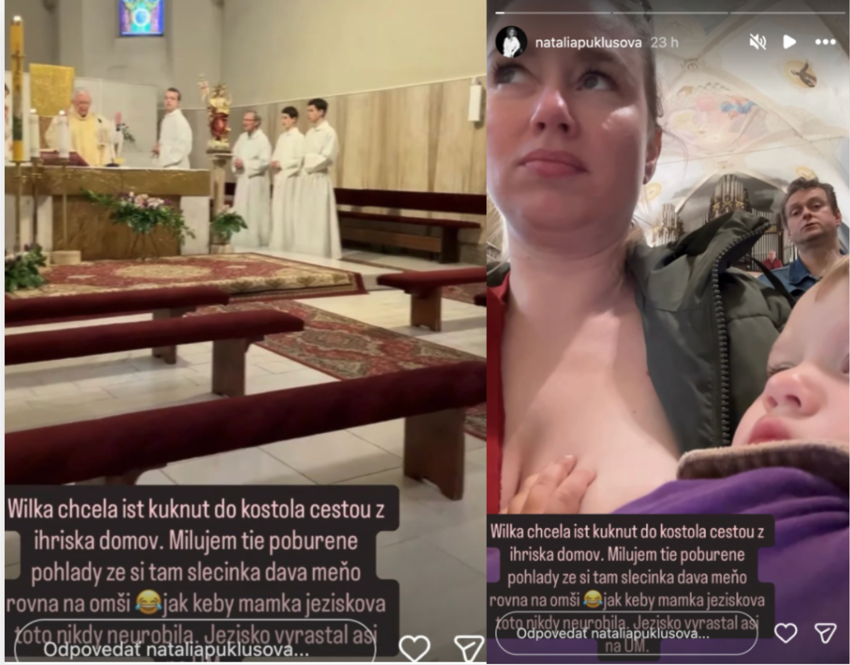 Natália sa nikdy netajila tým, že dcéru dojčí podľa potreby, či už uprostred rušnej ulice alebo pred nákupným centrom. „Bratislavské SOS kojenie. Milujem, keď nie sú iné možnosti a vzniká situácia nad očakávania,“ napísala v minulosti k videu, na ktorom kráčala s Wilkou prisatou na prsníku. Tentoraz však latku posunula ešte vyššie, keď si jej dcérka zažiadala návštevu kostola cestou z ihriska. Herečka súhlasila, a spolu s dcérkou sa usadila priamo v prednej lavici a počas omše spustila kŕmenie. K pobúreným pohľadom veriacich v pozadí pridala svoju typickú dávku irónie: „Milujem tie pohľady, jak keby mamka Ježiškova toto nikdy neurobila. Ježiško asi vyrastal na umelom mlieku,“ rypla si do kritikov.